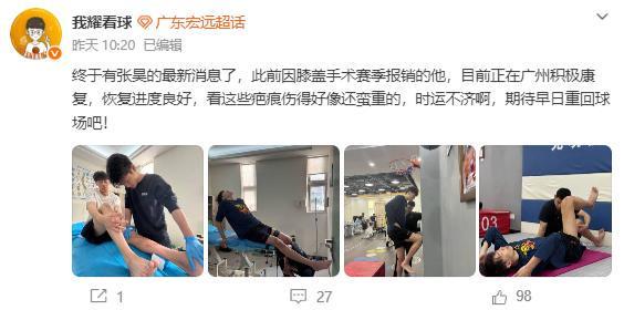终于有张昊的消息了,原来张昊膝盖受伤了,已经接受了手术,目前在广州恢复,从照片来看,张昊的膝盖伤势有点严重,手术口很长,至少本赛季,张昊不会回归了。这次受伤,给张昊的职业生涯蒙上了一层阴影,随着崔永熙的复出,再加上陈家政、王洪泽的成长,广东恐怕很难有张昊的位置了。查了一下张昊的合同,他的B类合同于2027年7月31日到期。